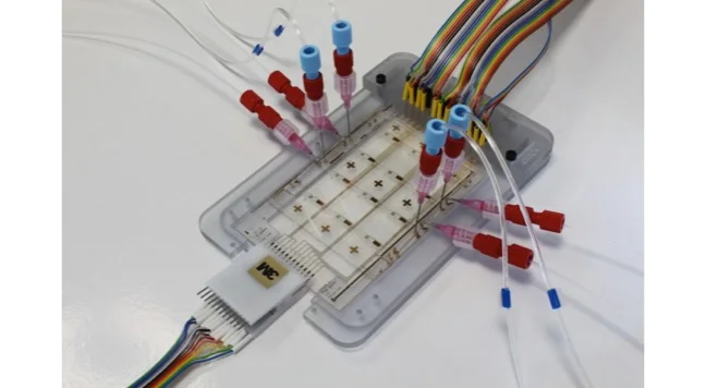 Organic electronic devices can be readily integrated into in vitro platforms to monitor electro active cell function, as well as to track in-line metabolite/biomarkers or to monitor the adhesion or coverage of cell layers, or their barrier tissue integrity. Applications in bacterial signaling and swarming of neutrophils are of current interest.